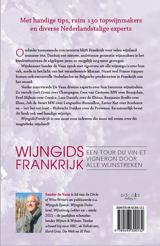 En natuurlijk bevat dit boek ook veel handige wijntips. Wijngids Frankrijk is een must voor iedereen die meer wil weten over dit magnifieke wijnland! Met handige tips, ruim 130 topwijnmakers en diverse Nederlandstalige experts. Sander de Vaan is lid van de Circle of Wine Writers en publiceerde o.a. Wijngids Spanje, Wijngids Duitsland, Wijnzinnig Lekker en – sinds 2021 – de jaarlijkse scheurkalender Wijnen & Wijnen. Verder schreef hij voor NRC, de Volkskrant, Hard Gras, Die Welt en El País.